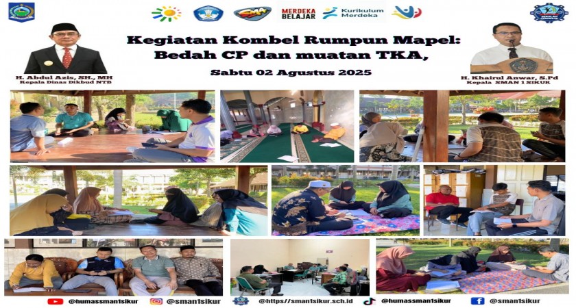 Sikur, 2 Agustus 2025 – Komunitas Belajar (Kombel) Guru Mata Pelajaran di SMAN 1 Sikur kembali menunjukkan semangat kolaboratifnya dalam mengembangkan kualitas pembelajaran di sekolah. Seperti biasa, setiap hari Sabtu diisi dengan kegiatan penguatan kapasitas guru melalui Kombel, dan kali ini, Sabtu 2 Agustus 2025, kegiatan mengangkat tema penting: "Bedah Indikator Tes Kemampuan Akademik (TKA)" .