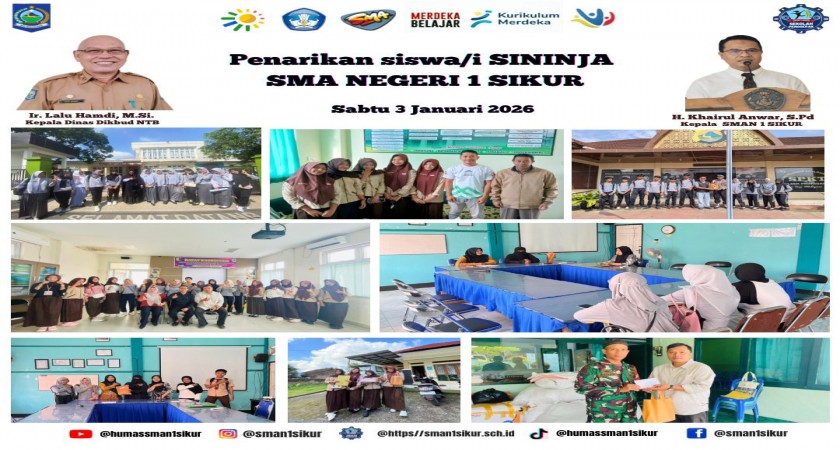 Program Sininja yang diikuti oleh siswa/i SMA Negeri 1 Sikur telah dilaksanakan pada tanggal 22 Desember 2025 sampai dengan 3 Januari 2026 di berbagai instansi pemerintahan dan unit UMKM yang berada di wilayah Kabupaten Lombok Timur. Program ini bertujuan untuk memberikan pengalaman belajar langsung kepada siswa/i melalui keterlibatan aktif dalam lingkungan kerja, pelayanan publik, serta kegiatan kewirausahaan.
